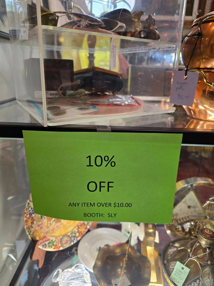 Want a quick peek before you visit? Check out the original Facebook post here: to see what’s new and waiting in the shop. From vintage décor to timeless curiosities, there’s always something unexpected to discover—and today’s discount makes it even sweeter.